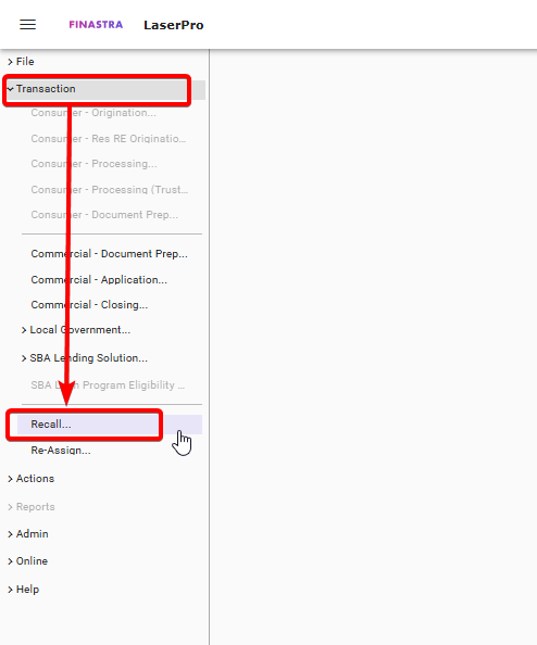 - Go to "Transaction" > "Recall..."