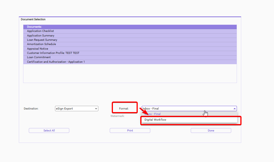- Select the dropdown menu for "Format" and select "Digital Workflow"