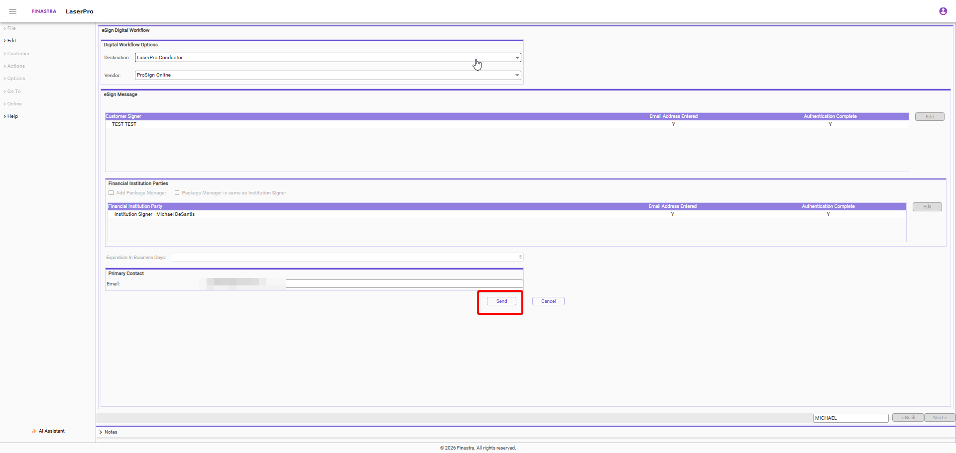 - On the "eSign Digital Workflow" screen, select "Send"