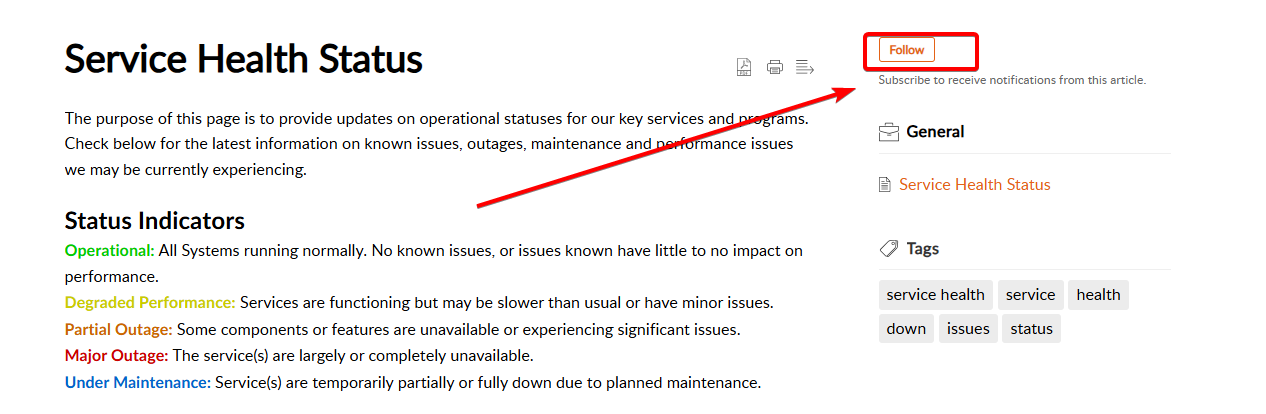 The purpose of this page is to provide updates on operational statuses for our key services and programs. Check below for the latest information on known issues, outages, maintenance and performance issues we may be currently experiencing.