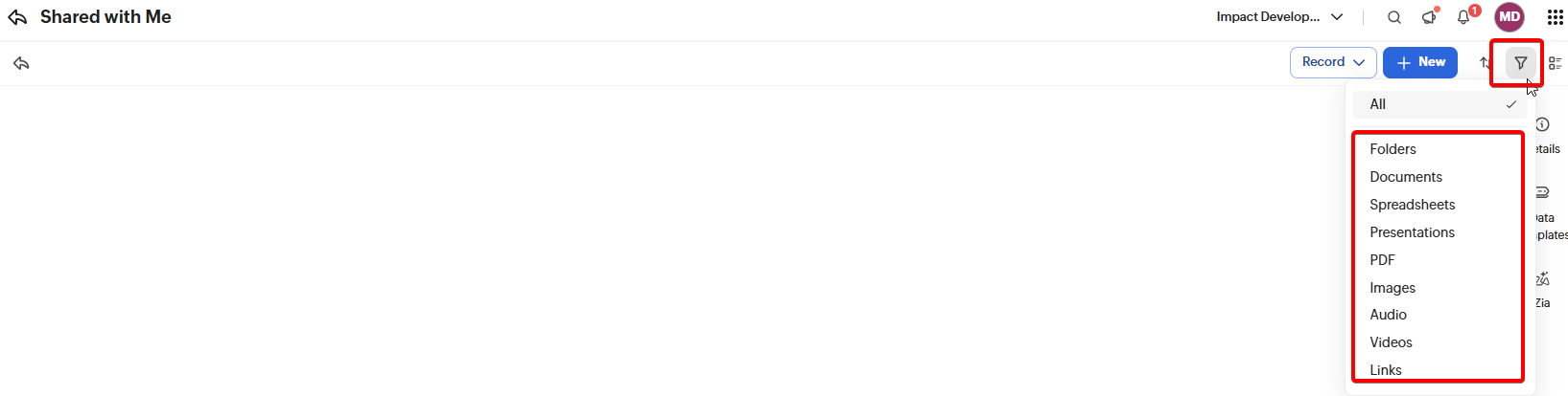 Locating Shared items and sharing a File or Folder with others in Zoho WorkDrive
