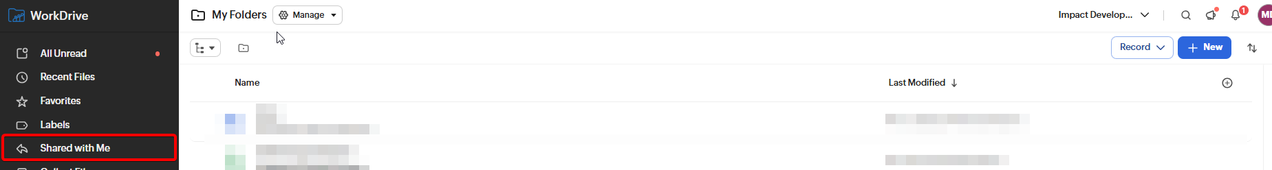 - On the navigation bar to the left, click "Shared with me"