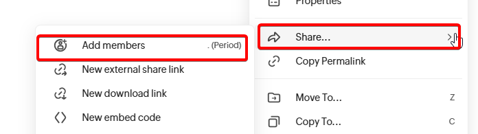 - Click "Share" then choose "Choose Members" for internal (IDF users) sharing: