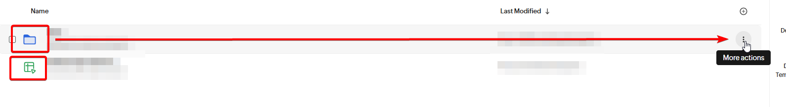 - While in the Zoho WorkDrive app, find the file or folder you wish to share, hover over it and click the 3 dots next to the item: